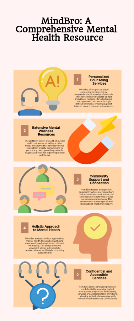 Holistic Wellness: We don’t just focus on one aspect of mental health. MindBro helps you nurture your emotional, psychological, and physical well-being.